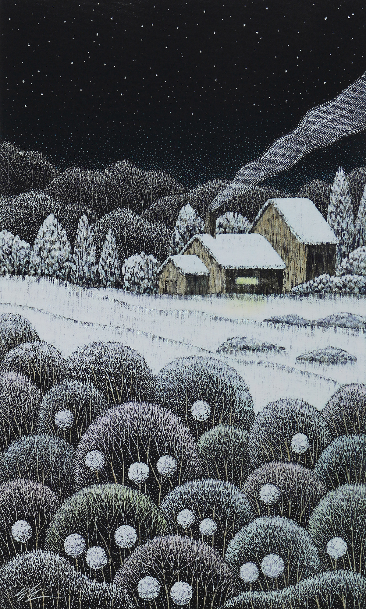 한준호 | 따뜻한 겨울 2508 -2, 45.5x27.3cm, Mixed media(Scratched) on canvas, 2025