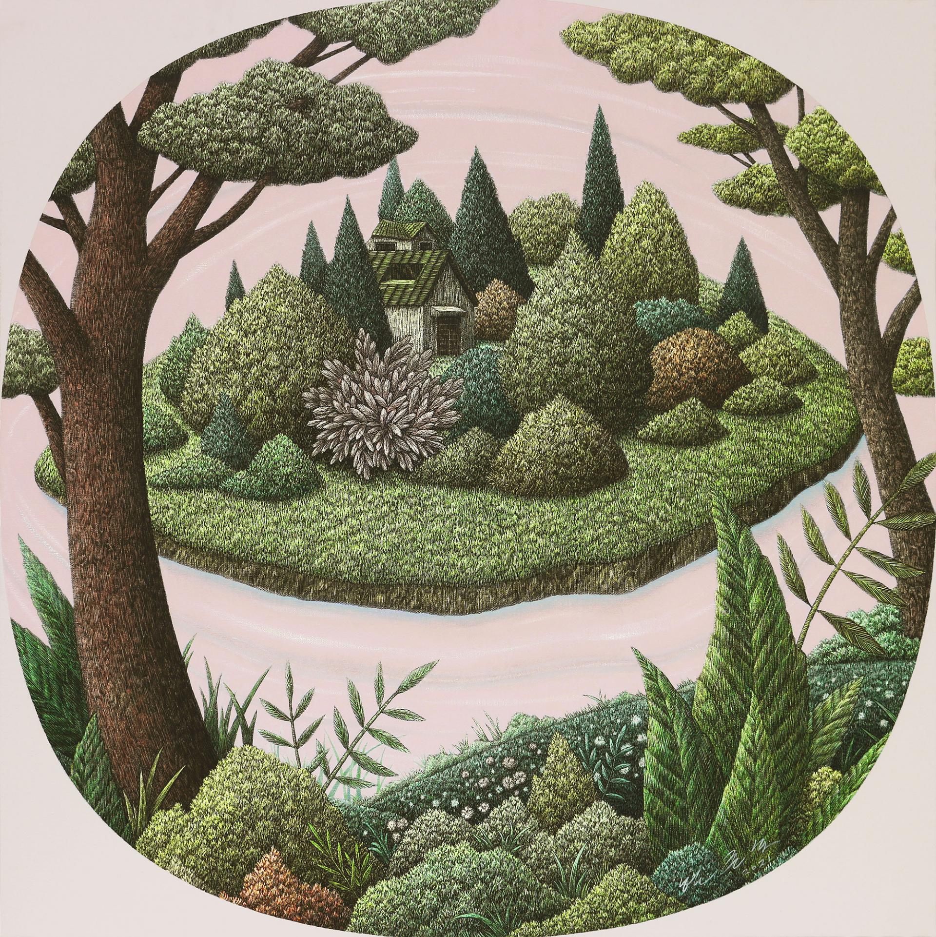 한준호의 숲은 우리가 잃어버린 초록의 기억이다. 도시의 회색 빛 틈새에서 문득 떠오르는 그리움의 형상 Querencia, 그 Querencia시리즈 속 정원은 세상의 간섭 없이 오롯이 숨 쉴 수 있는 마음의 안식처로 작가는 그 안에 ‘쉼’의 미학을 심어 두고 있다. 밀집과 경쟁 속에 지친 도시의 나무들이 아니라, 충분한 거리를 두고 단정히 자라난 고요한 생명들이다. 그 나무들 사이를 산책하듯 시선을 거닐면 관객은 자신 안에 남아 있던 자연의 기억을 천천히 되찾게 된다. 그 빛은 자연을 찬미하는 오래된 기도의 잔향이며, 우리 모두가 언젠가 돌아가야 할 ‘초록의 기억’을 부르는 노래다.