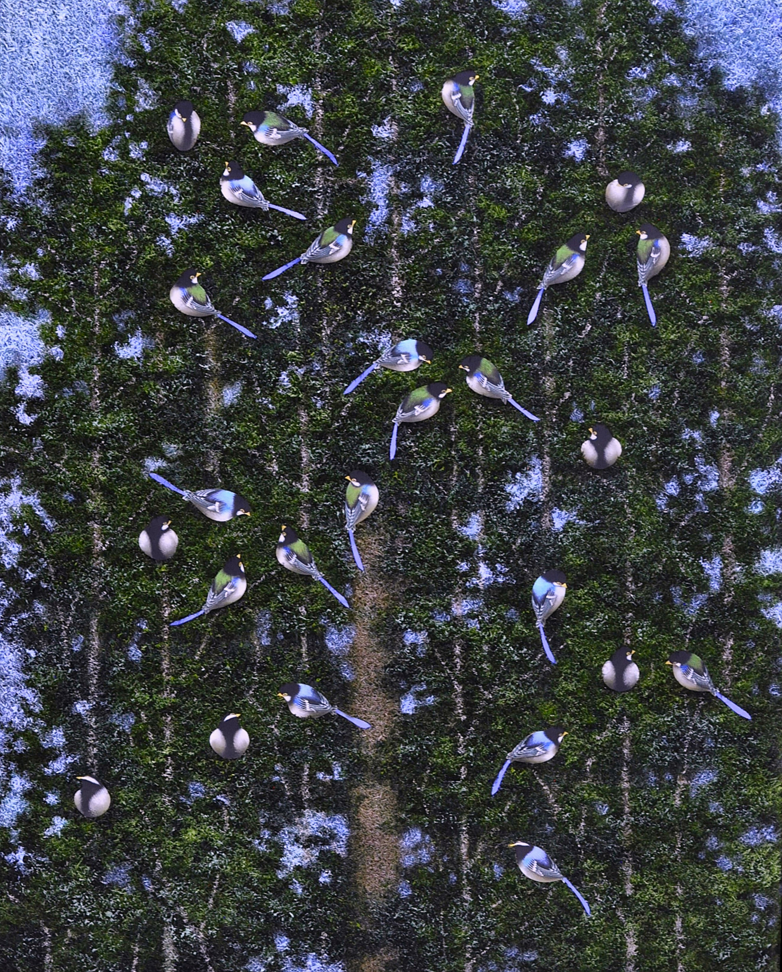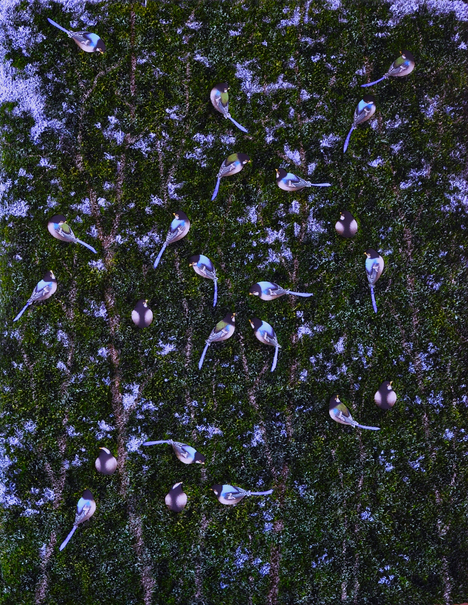 새는 인간의 은유적 표현으로 역시 그 맥을 이어온다. 사회를 논하면 인간이 빠질 수 없고 인간은 사회적 관계가 크던 작던 사회에서 자신의 목소리를 내고 들어 주길 바라며 살아간다. 목소리를 낸다는 것은 생각을 전달하는데 있어 소리의 형식으로는 말이나 글, 그림 , 노래 , 눈빛, 행동까지 그 수단은 다양하다. 침묵 마저도 강항 저항의 소리일 수 있다. 소리의 내용으로는 사회에 대한 긍정적 반향을 위한 유익한 소리도 있지만 반대로 집단적 이기심이나 개인의 감정적 불평을 소리라는 수단으로 정당화하기도 한다. 물론 혼자 내고 혼자 듣는 소리는 근거가 없더라도 무슨 상관인가. 하지만 소리를 듣는 대상이 대중이고 의도가 어떤 대상을 왜곡하고 대상의 존엄을 헤치는 내용이 있는 노래라면 그 소리는 폭력이다. 소리는 자유의 상징이고 누구에게나 평등한 권리이다. 하지만 대중을 향한 소리는 소리를 내는 이유와 근거가 있어야 하며 거짓 없이 사실을 바탕으로 소리를 내는 장소와 취지에 맞는 내용이어야 설득력이 있다. 이 사소한 기본적인 배려를 무시한 채 살아가는 언어의 폭력의 환경에 노출되어 누군가는 우울증에 빠지고 누군가는 공포에 시달리고 누군가는 삶의 의욕을 상실한다. 그 안타까운 대상이 바로 자신이 될 수도 있다는 것을 우리는 염두하고 상대에 대한 기본적인 인격존중의 범위에서 절제된 소리를 내야 되지 않을까. 소리는 수단일 뿐이고 자유의 상징일 수 있지만 소리가 없다고 해서 노래가 없는 것도 아니다. 언어의 폭력은 자신의 나약한 점을 더 드러내는 행위 일 뿐 상대를 깎아 내리고 누른다고 자신이 더 나은 사람으로 비춰지는 것이 아니라는 것을 깨닫는 사회가 되기를 바라며 언어폭력의 노출된 분들에게 당신들의 진정한 노래를 듣는 사람이 반드시 존재한다는 위로와 희망을 전합니다.
